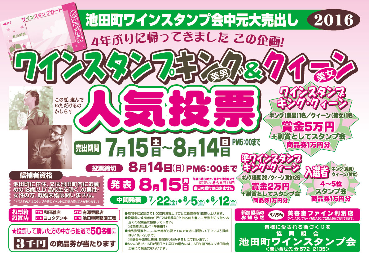 ワインスタンプキング(美男)&クイーン(美女)人気投票を4年ぶりに開催します!!