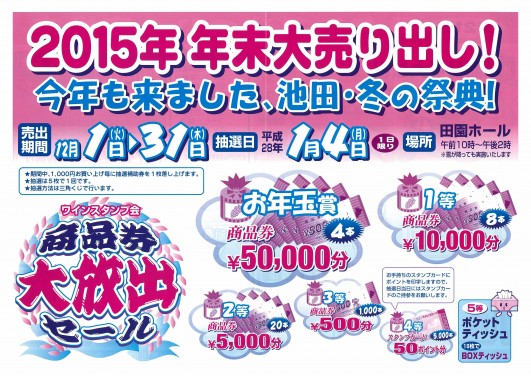ぜひこの機会にたくさんお買物をして、1月4日のスタンプまつりへ行きましょう♪